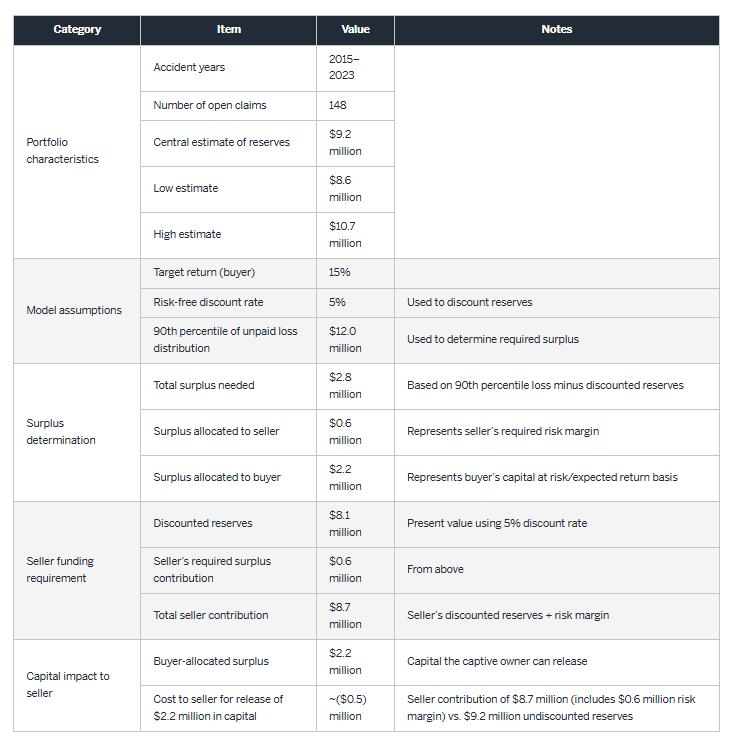 For potentially a relatively small cost, captive owners and insurers can unlock significant value by transferring legacy liabilities, improving capital efficiency, reducing risk, and streamlining operations. The model provides a framework for assessing potential benefits and serves as a first step in evaluating whether a transaction is worth pursuing.